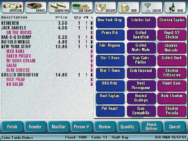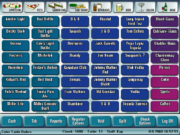 • Digital Dining's Bar\Quick Service register is a quick order entry screen designed to provide maximum
